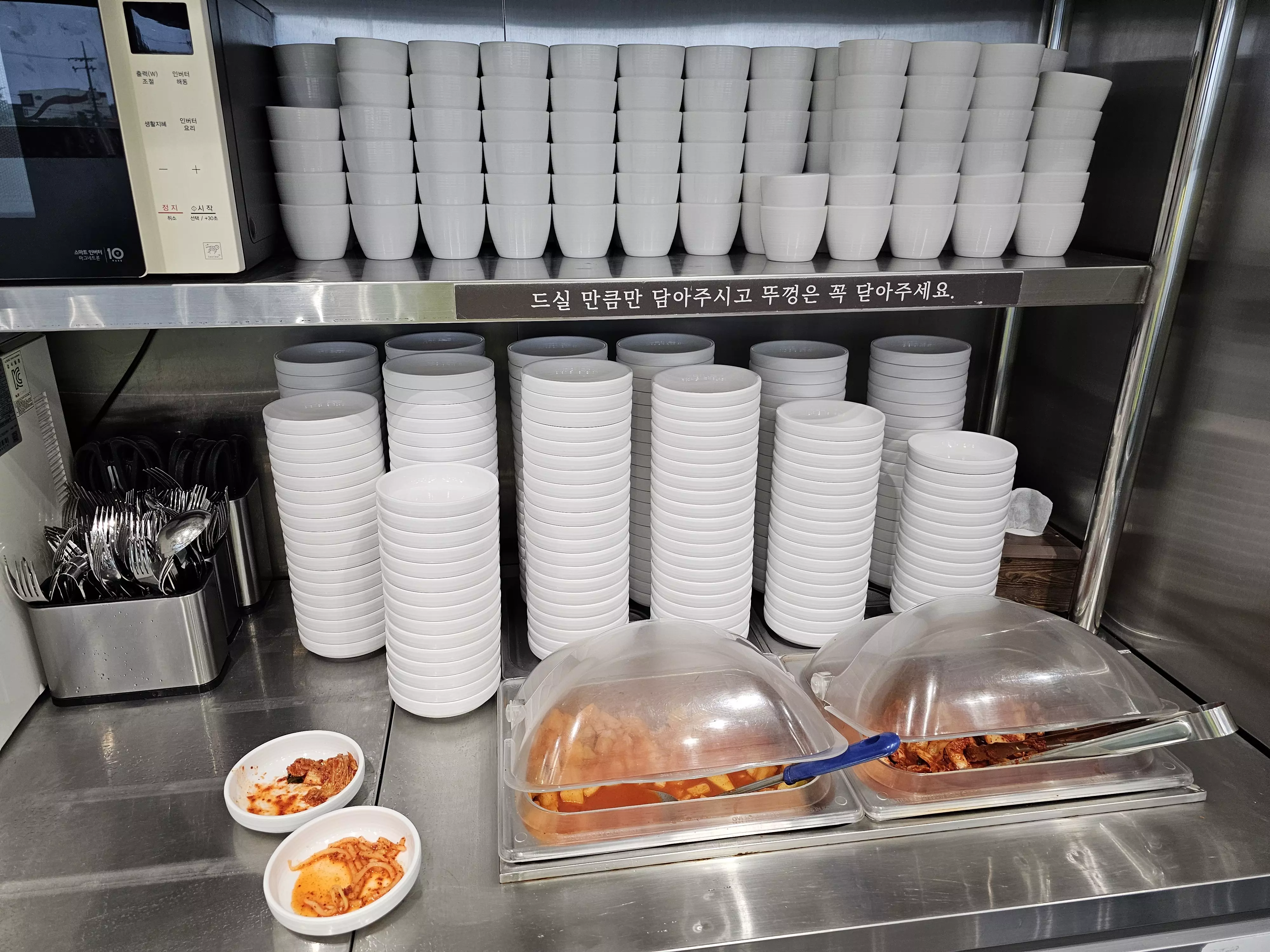 왼쪽이 손님들이 가져다 드시는 곳이고 오른쪽은 직원 분들이 기본 세팅을 하시는 셀프바입니다.